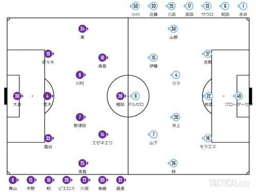 はしがき 毎度お世話になっております。今回は鹿島戦。広島は目下3連敗中で立て直しを図りたいところですが、体調不良者が続出で前日練習が中止になる緊急事態。監督不在の中、勝ち点の同じ鹿島相手に連敗ストップをかけて戦うことになりました。スタメンは…